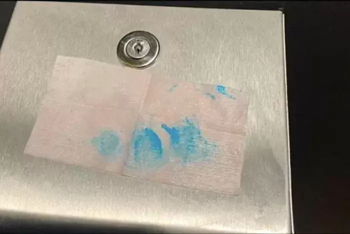 EPL 경기장 휴지걸이를 닦은 검사지가 마약류 반응으로 파랗게 물들어있다 / Daily Mail